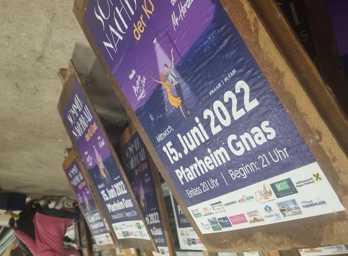 Für unseren Sommernachtsball muss einiges getan werden. So haben wir, wie auch den Jahren zuvor, Plakate vorbereitet und stellen diese in der Gemeinde Gnas auf.