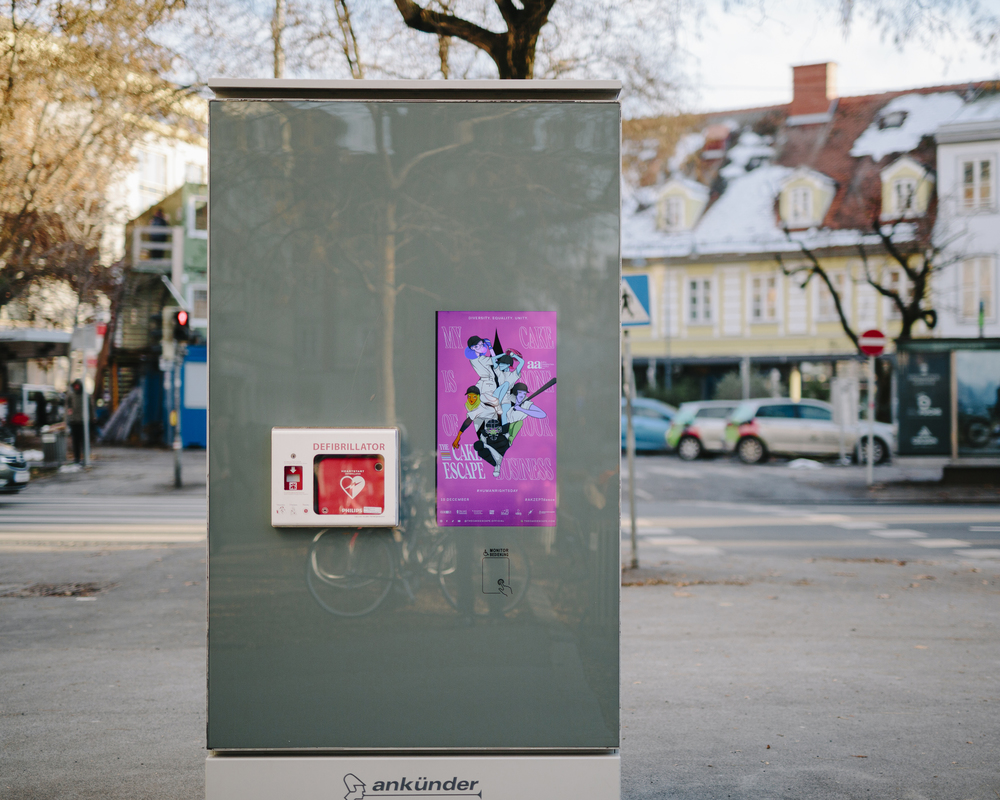 Sticker – Die Sprache der Dachrinnen, der Stromkästen, der Straßenschildstangen, der Postkästen… #thegreateststickerwallofgraz - frei zugänglich rund um die Uhr vor der Leechgasse 24