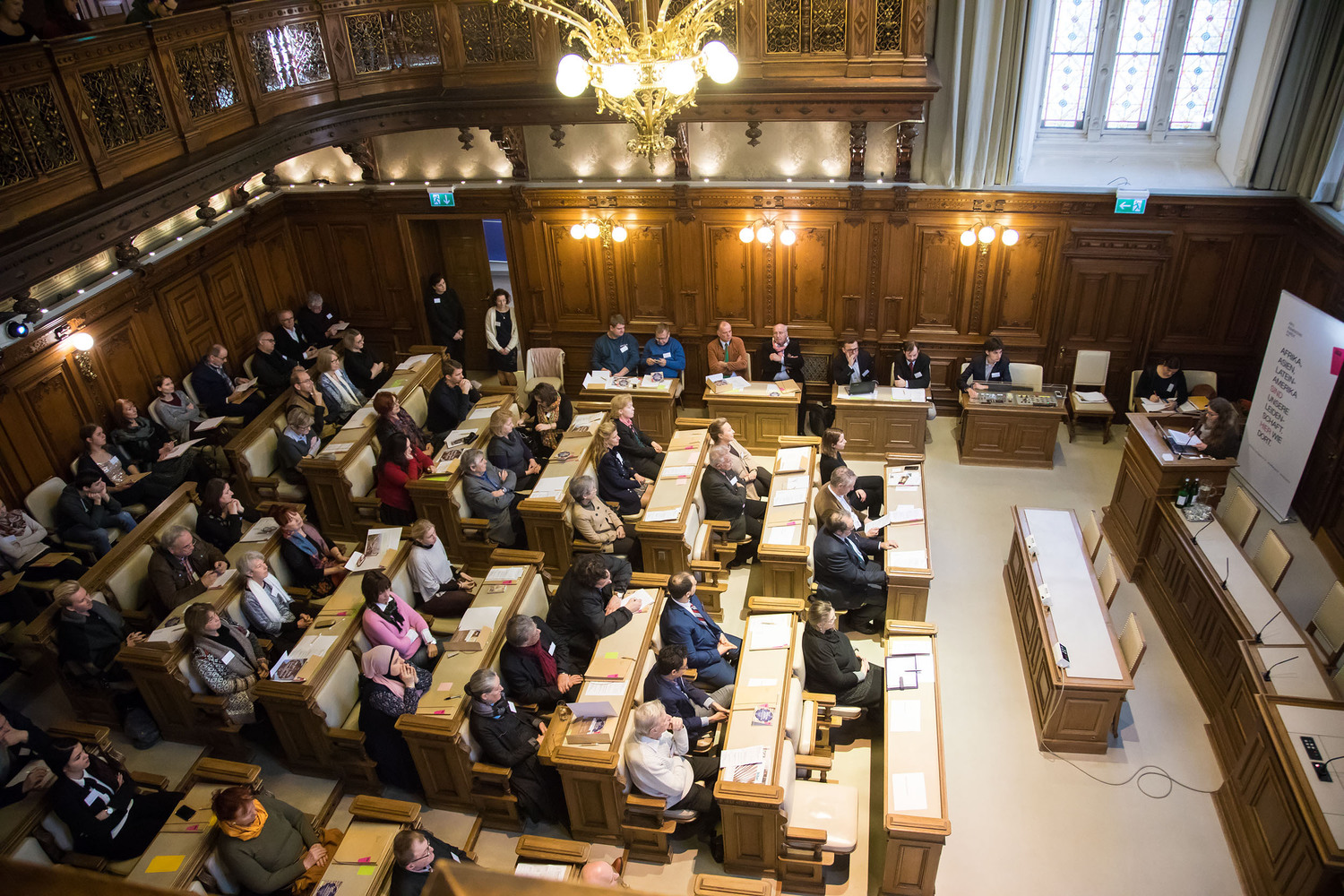 Dieses seit 2013 jährlich stattfindende Format thematisiert jeweils aktuelle Fragen aus dem interreligiösen und interkulturellen Dialog, diesmal eben zur Rolle von Medien. In offenem und kritischem Austausch konnten die rund 130 TeilnehmerInnen unterschiedlicher Religionsgemeinschaften prononcierte Impulse aus drei internationalen Vorträgen mitnehmen: Carmen Koch (Zürcher Hochschule für Angewandte Wissenschaften) referierte unter dem Titel „Von Helden und Bösewichten“ über ihre Studienergebnisse zur medialen Berichterstattung über Religionen in der Schweiz. Alexander Warzilek, der Geschäftsführer des Österreichischen Presserates, stellte den Karikaturenstreit und andere spannende medienethische Grenzfälle anschaulich zur Diskussion. Der Vortrag von Anna Neumaier (Universität Bremen) beleuchtete die Wechselwirkungen von Religionen und Digitalen Medien und überraschte mit dem Forschungsergebnis, dass der Großteil der BenutzerInnen und Benutzer digitaler Foren zum Thema Religion in der Altersgruppe 45-60 liegt.