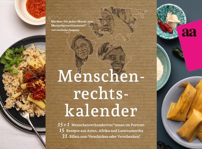 Der Menschenrechtskalender verbindet 15 inspirierende Persönlichkeiten, die sich weltweit für Menschenrechte einsetzen, mit köstlichen Rezepten aus verschiedenen Kulturen. Jedes Gericht erzählt eine Geschichte und lädt dazu ein, bewusst und nachhaltig zu kochen – mit regionalen und biologischen Zutaten.
