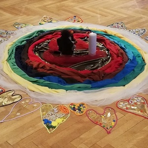 Gemeinsam mit den Kindern werden religiöse Inhalte und Schwerpunkte ohne Zeitdruck erarbeitet und anhand von Legematerialien zu wundervollen Bodenbildern gestaltet. Die Einheiten werden mit Liedern, Tänzen, bewussten Sinneswahrnehmungen und Geschichten gestaltet.