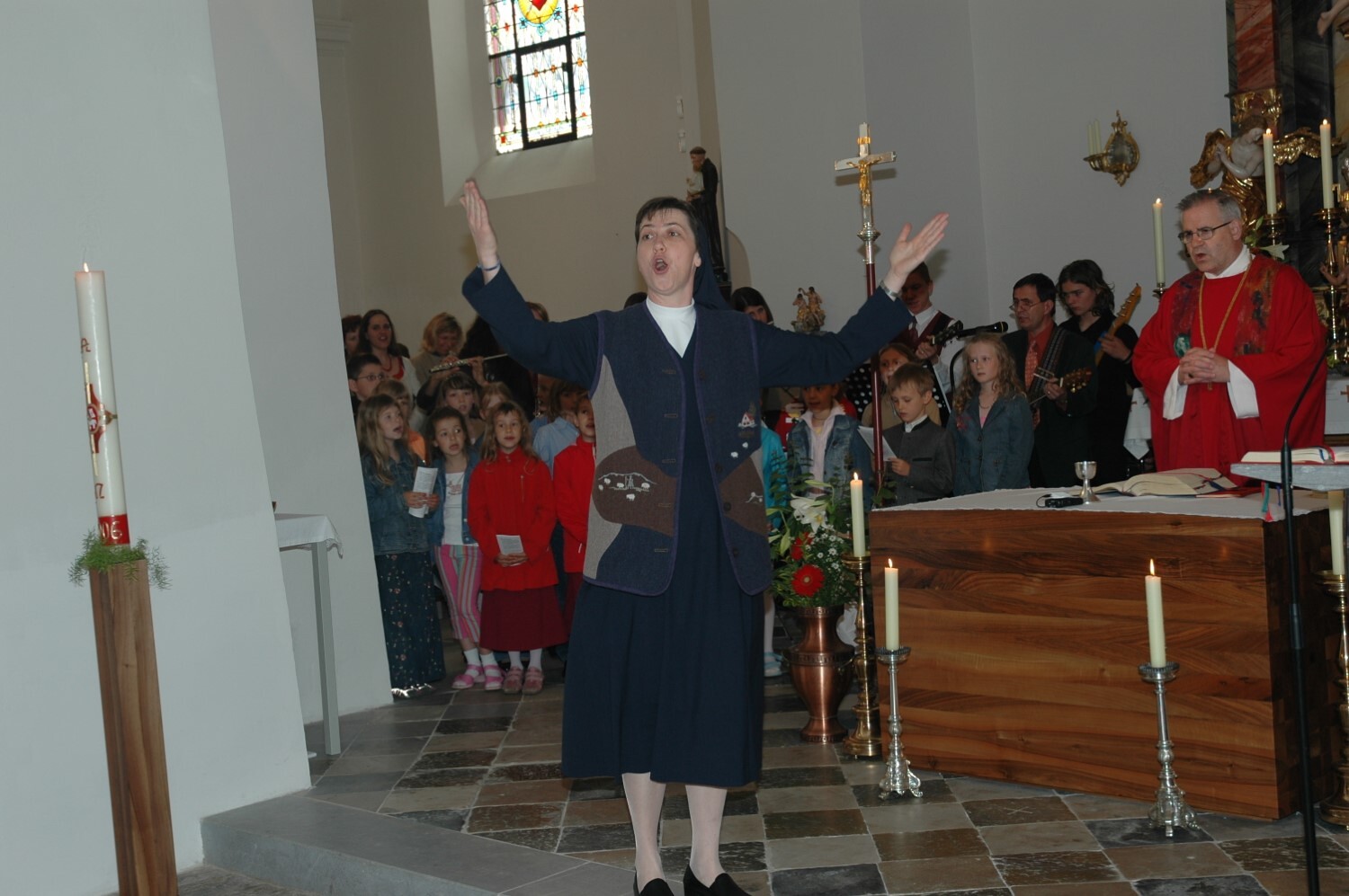 Sr. Maria leitet den Chor.