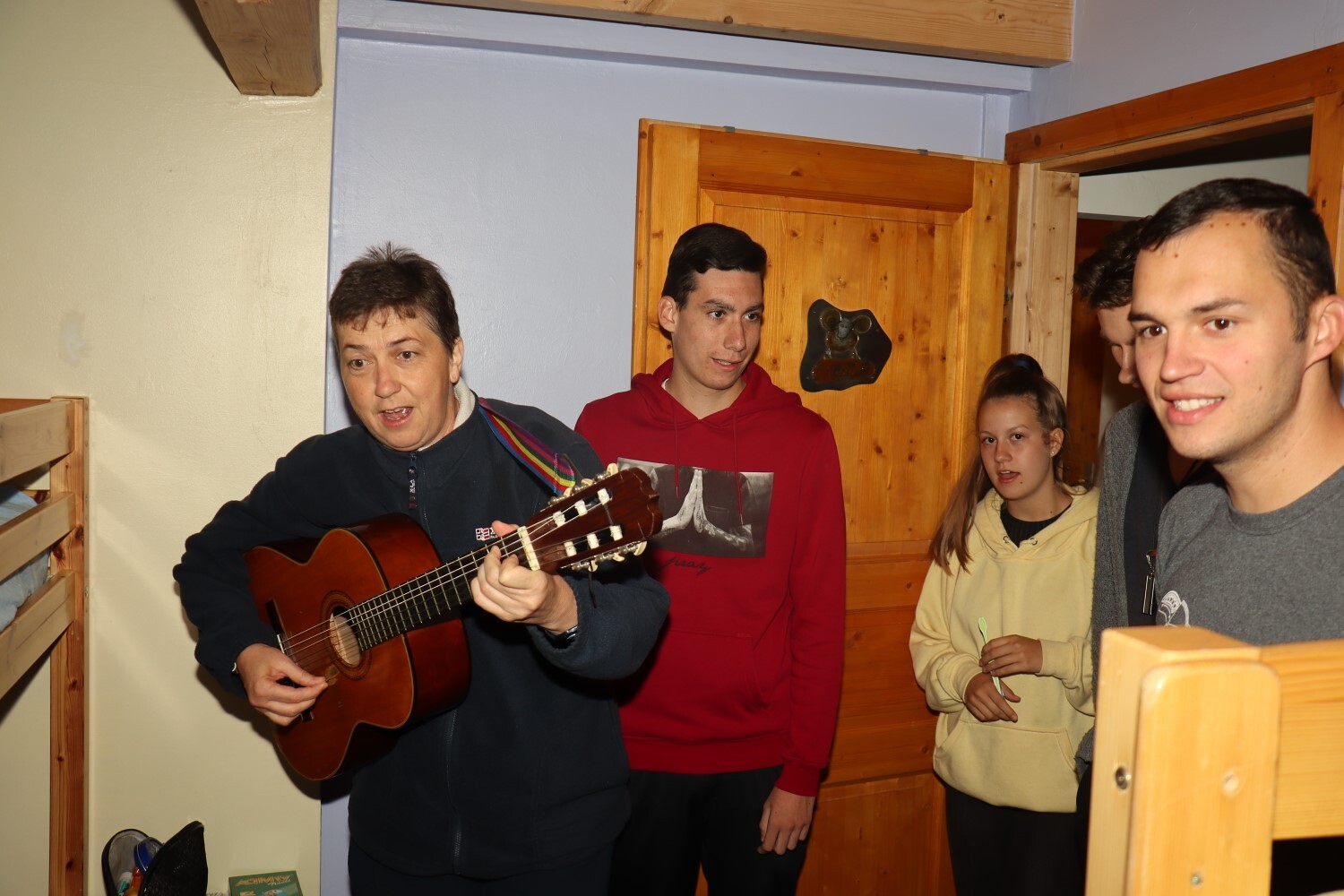 Lustige Lieder werden rund um das Lagerfeuer gesungen.