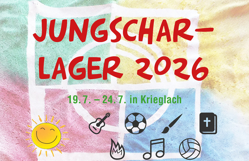 Vom Sonntag, dem 19. Juli bis Freitag, dem 24. Juli fahren wir nach Krieglach auf Jungscharlager. Die Anmeldung ist hier möglich.