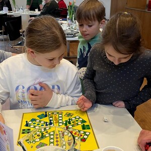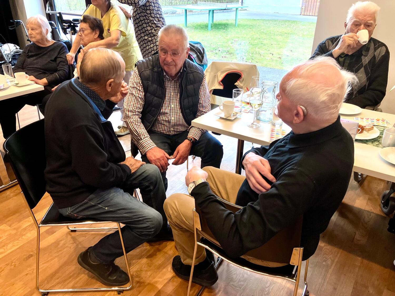 Frau Michaela Moser und Frau Susanne Schreiner überraschten die anwesenden Senioren heute mit dem Besuch einiger Kinder aus der Nachmittagsbetreuung. Der Raum war gefüllt mit lebendiger und fröhlicher Stimmung. Beim gemeinsamen Spielen mit Jung und Alt wurde viel geplaudert und gelacht. Die Kuchenteller leerten sich rasch und bei Kaffee, Wein und gesponserten Säften, waren alle Gäste bestens versorgt.