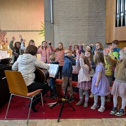 Beim Kinderkreuzweg wurde zirka 30 Kindern die Leidensgeschichte Jesu mit Symbolen und Bildern rund um Kirche und Pfarrheim von Monika Rainer und Julia Herk-Pickel kindgemäß nahegebracht.