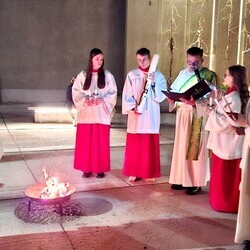 Mit der Feuersegnung am Kirchplatz, danach dem Einzug in die dunkle Kirche mit der Osterkerze und dem Exsultet begann die Lichtfeier. Das Licht wurde weitergegeben an die Gottesdienstbesucher_innen. Bei der Wortgottesfeier kamen beim Gloria die Glocken und das Licht zurück. Das Halleluja tönte, der Weihrauch stieg empor.