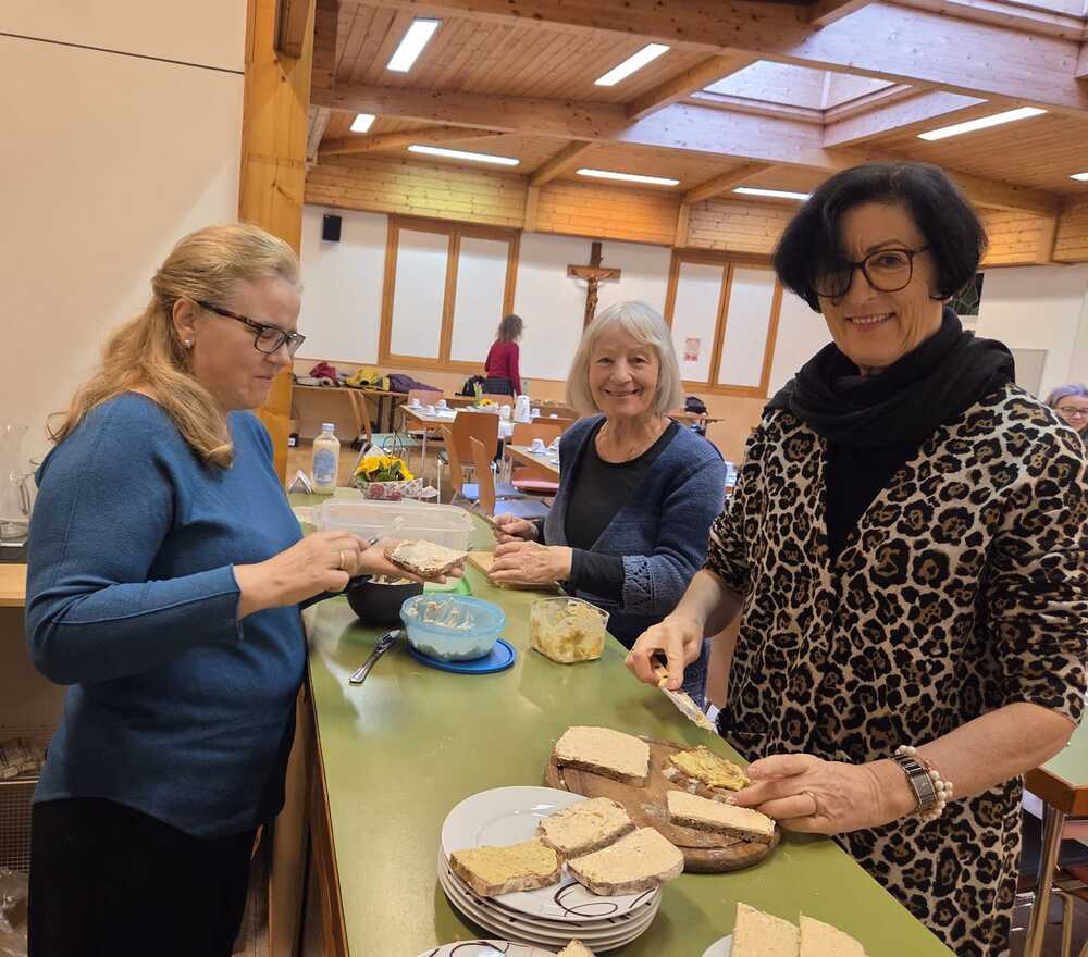Nach dem musikalisch wunderbar umrahmten Gottesdienst begrüßten die KirchenchorsängerInnen  die BesucherInnen "mit an schean G'sang" und luden zu einem gemütlichen Beisammensein im Pfarrsaal ein.