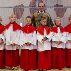 An diesem Tag durften wir auch wieder fünf schon etwas erfahrenere Ministranten als Hauptminis vorstellen. Nach ca. zwei Jahren fleißiger Mitarbeit im Gottesdienst haben sie sich alle Fähigkeiten zum selbstständigen Ministrieren in einer Messe angeeignet und können dadurch auch unsere jungen Neueinsteiger führen und unterstützen. Wir gratulieren