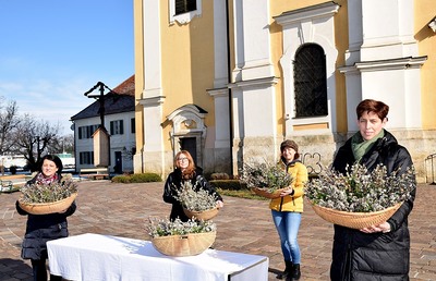 Mit Unterstützung einiger kfb Mitglieder wie Gerlinde Holler, Christine Kern, Rosi Klingler, Monika Winterleitner und Martina Zwath hat das Vorstandsteam der kfb St. Veit wieder Palmbüschchen gebunden. Am Sonntag nach dem Gottesdienst bei Sonnenschein aber eisiger Temperatur wurden die Palmbüschchen gegen eine freiwillige Spende am Kirchplatz angeboten.