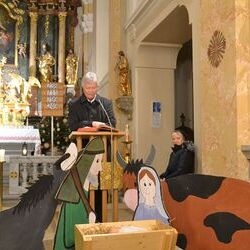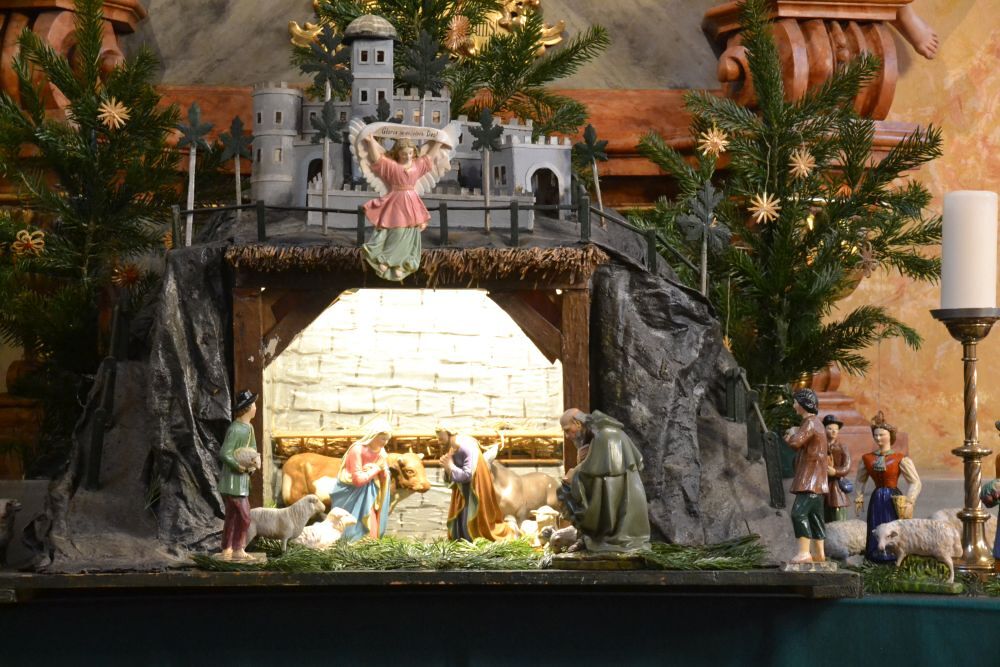 Die Krippe wurde aufgestellt - ohne dem Jesuskind, das kam erst bei der Kinderkrippenfeier dazu.