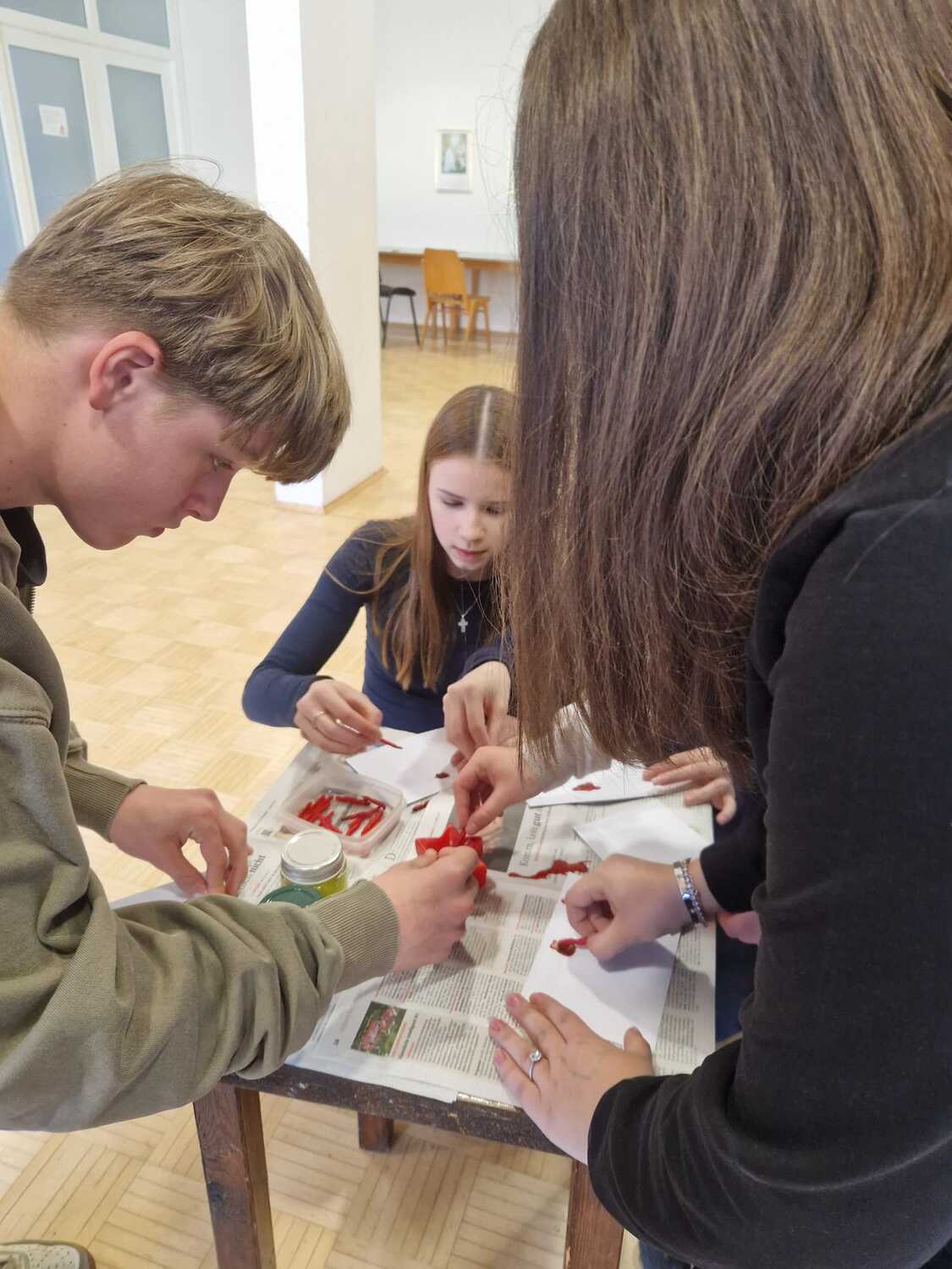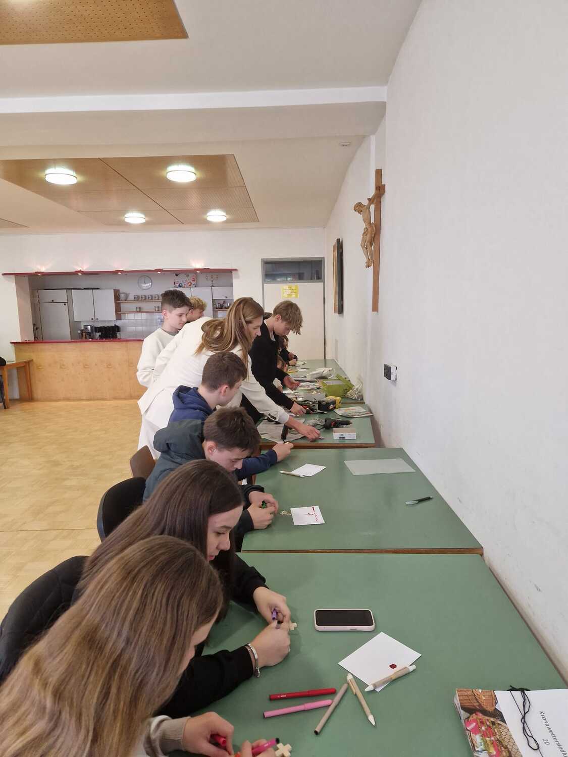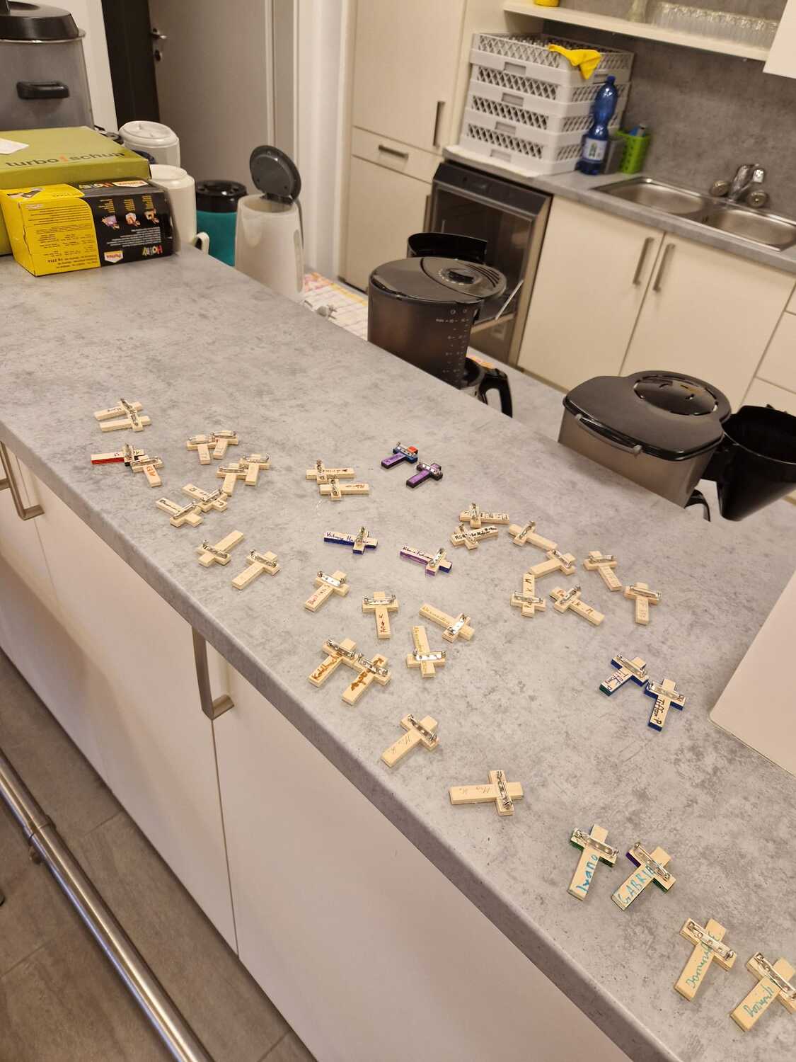 Um die Verbundenheit zwischen Firmling und Pate auszudrücken, wurden zudem Kreuze als Anstecker gestaltet, die bei der Firmung getragen werden können. Hierbei durften sich die Firmlinge kreativ ausleben.